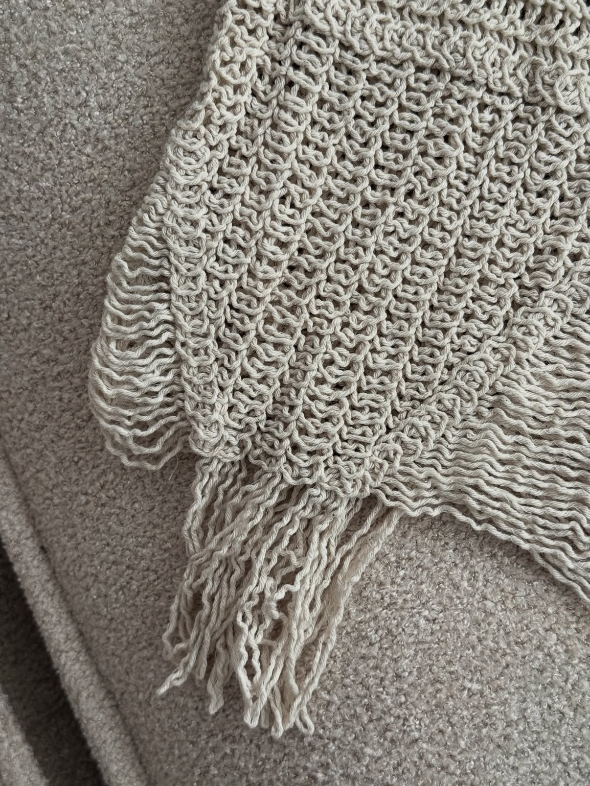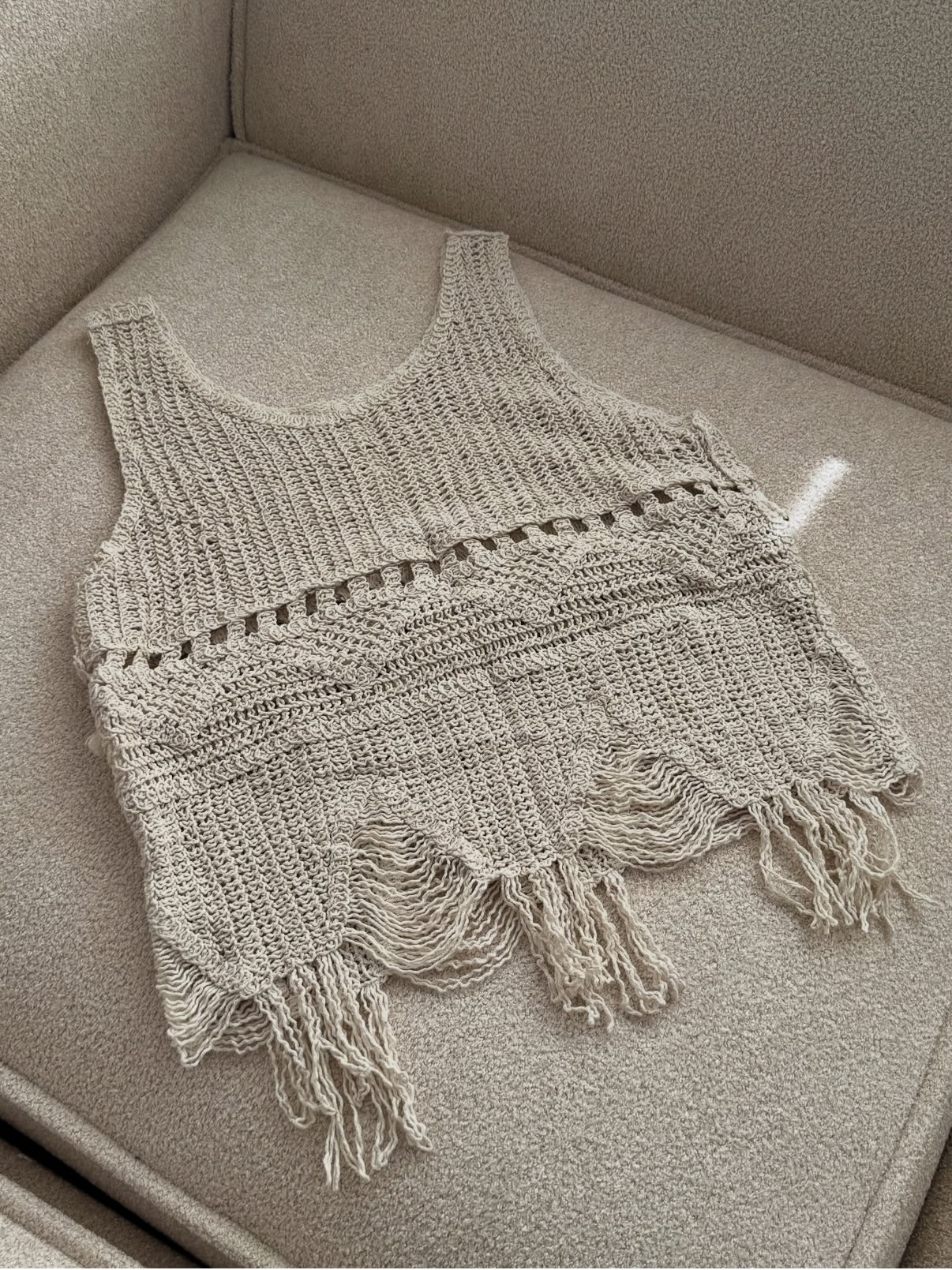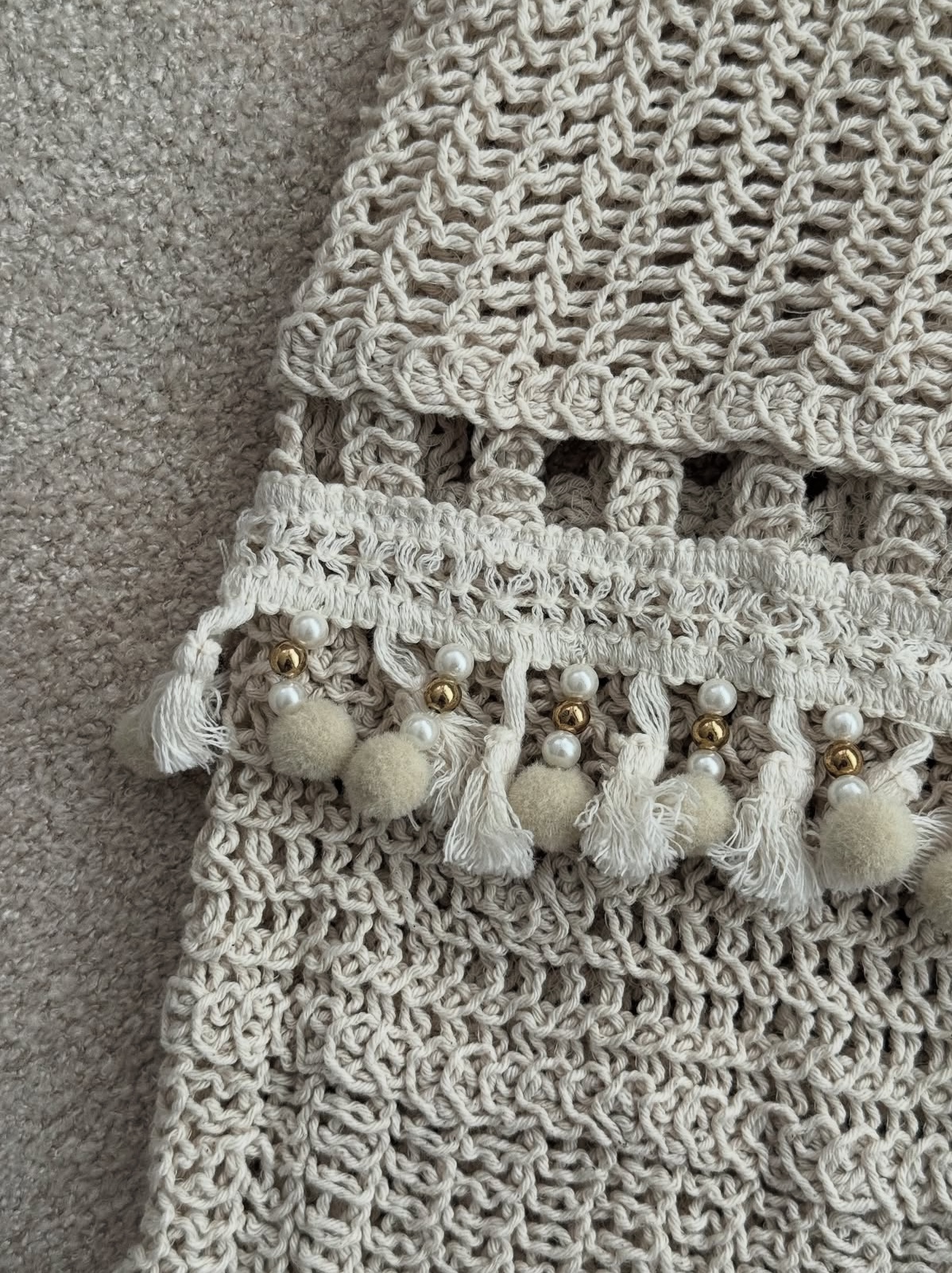 تاپ پایین ریش دار قلاب بافی تک رنگ کرم استخونی فری سایز دور سینه۹۸_باکشسانی ۱۰۸سانت قد کار بدون ریش۵۳-۵۴